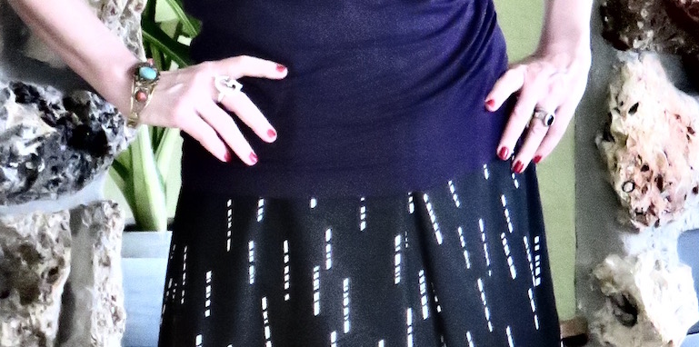 This skirt and the indigo colour on you are fabulous, Patti. And your hair looks fantastic.
