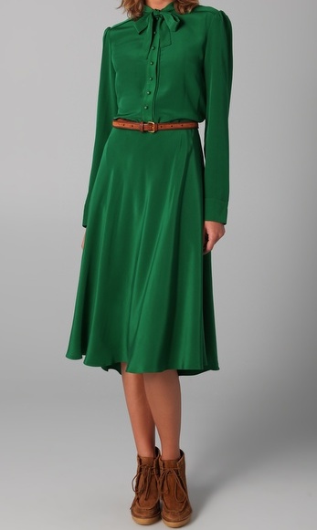 My favorite: Marc by Marc Jacobs silk dress. Joanie of Making 50 Fabulous wore a similar dress just a couple of days ago, a trend-setter! Do not like the desert boots with this look. |