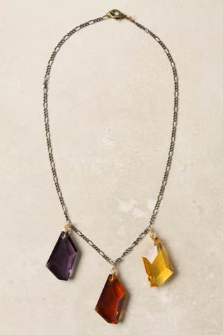 The colors and simple design of the necklace inspired me to reach into my (imaginary) closet for rich fall colors (like the ones Pam is writing about this week). I love red, purple and deep yellow together, and I think all these pieces play together nicely.
