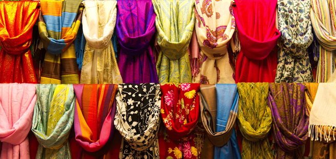 Here’s what I see in France: last winter was all about huge, heavy stoles, usually in a plaid, wrapped around several times, as if to hide a neck brace. These are like the original pashminas–very soft and the size of a beach towel. From what I see in the shop windows, they are back again.
