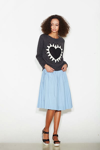 Full pleated skirt, graphic tee, flatform sandals. Source |