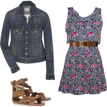 Feminine dress plus broken-in denim jacket. Polyvore. |