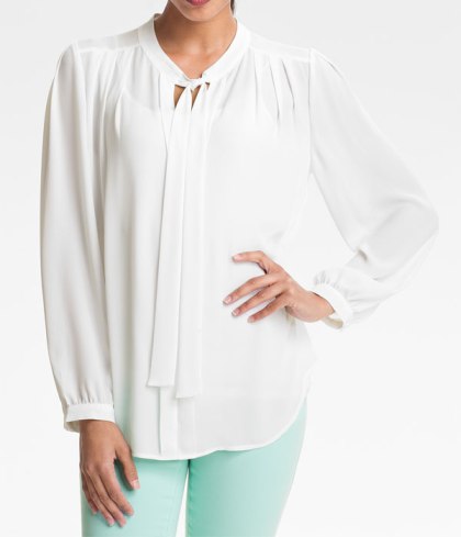 I think this blouse may be the solution to my ivory topper quest. Flowy, deep neckline and washable, woo-hoo. And under $40 on sale. |