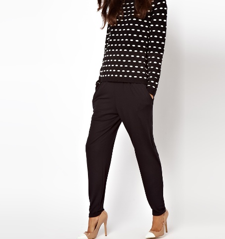 Even the description at the ASOS site sounds like 1989: “The details include: a high-rise waist with pull-on styling, pleats to the front, pockets to the hips and a tapered leg with a stitched roll cuff (emphasis mine).” Whoa, my favorite pants of 25 years ago!