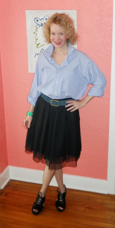 Just this morning I was experimenting with my husbands' jeans and shirts. The shirts look great. And you are so right in balancing them with a skirt. I will copy that. Thank you.