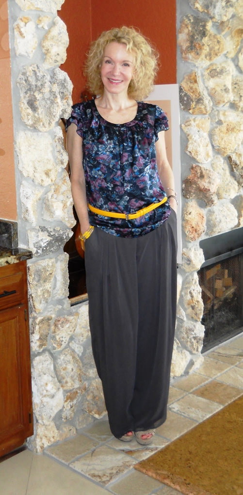 I'm inspired by your outfit – I was looking through Soft Surroundings catalog, but just haven't decided on anything yet. Palazzo pants are one of my desires, so maybe I should stop looking. Also, I knew I wanted a colorful belt, but maybe not red. Your yellow is a perfect color accent!