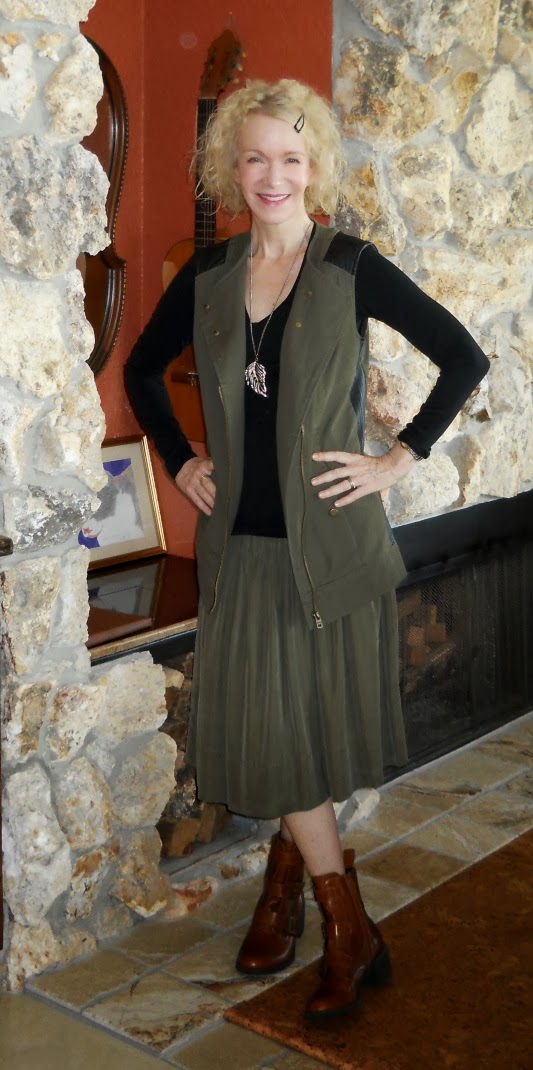 I love vests! And olive, too! Oh yes, and mixing the old with the new. You've done it all and look great. Warmest wishes for 2014! ~ Susan
