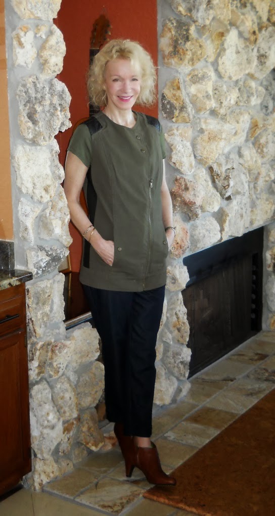 Patti , the style and color of the vest works really well on you, tough no, just stylish. Thank you for Visible Monday