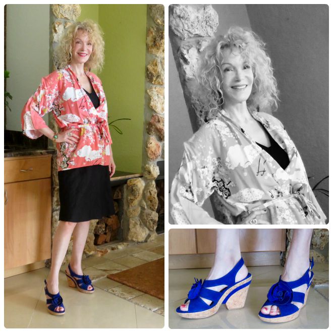This kimono style top, thrifted at Molly Mutt (similar) makes me smile every time I see it. It reminds me of my friends and good times at the thrift shop, and the colorful print is so happy.