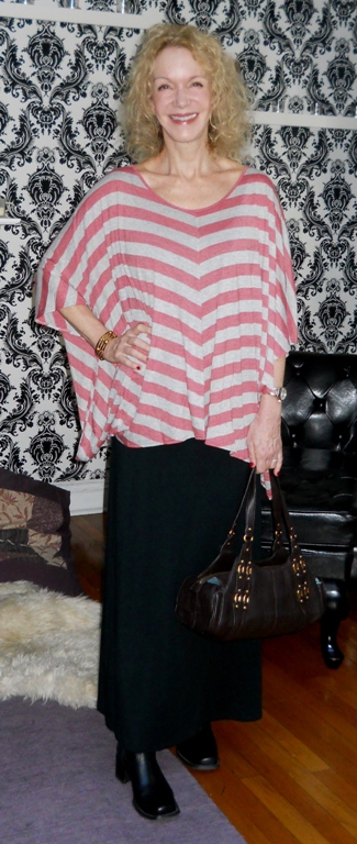 what a great striped dolman top! looks so great on you. i like how you wore it with a maxi.