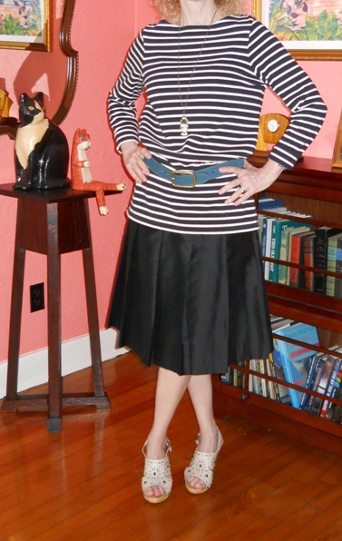 You look great, Patti! I love this. Love the stripes, the skirt and those shoes. 🙂