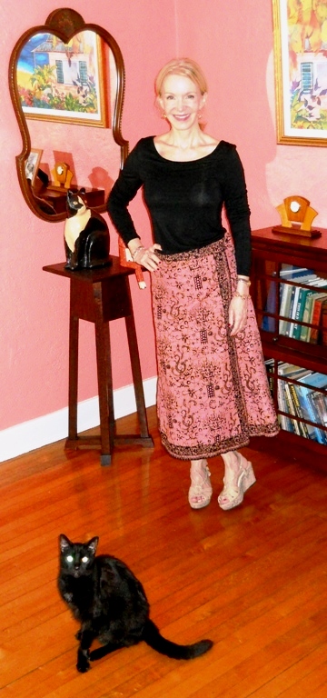 I like the updated look on the classic skirt! I also like the elegant feline. Lovely, the both of you!