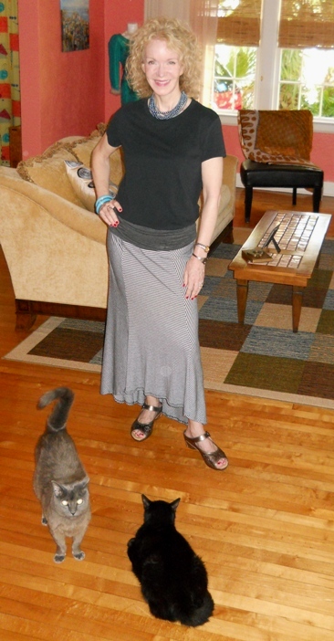 WORK THAT GREAT MAXI SKIRT, PATTI. I love it. I love how your cats really want to play, here. Also, I must say your hair looks FAB in these photos.