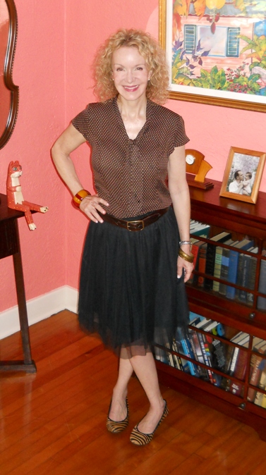 Patti, I have longed and looked and wished for a tulle skirt, and talked myself out of one a zillion times, and then there you are wearing one and looking perfectly lovely. (Actually, the 7-month kitten is the reason one still hasn't made it into my house :P) My other weakness is tie collar blouses, so you are pushing all my style buttons! And looking effortlessly chic and ageless while you do it. But I'm pretty sure you can wear anything and it will look beautiful on you.