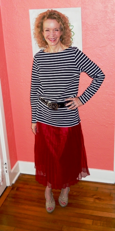 Rules, schmules 😉 You look fabulous – rules are for breaking as you've just proved, Patti! The red skirt is super pretty and floaty, and I love the looser fit of the top (I have a Breton top but I'd like the fit to be a little looser). Thanks for hosting as always!!