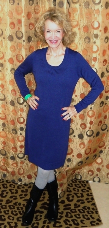 Your dress looks blue on my computer, but it's a very rich shade. Looks like a comfy dress, and a perfect fit for you!
