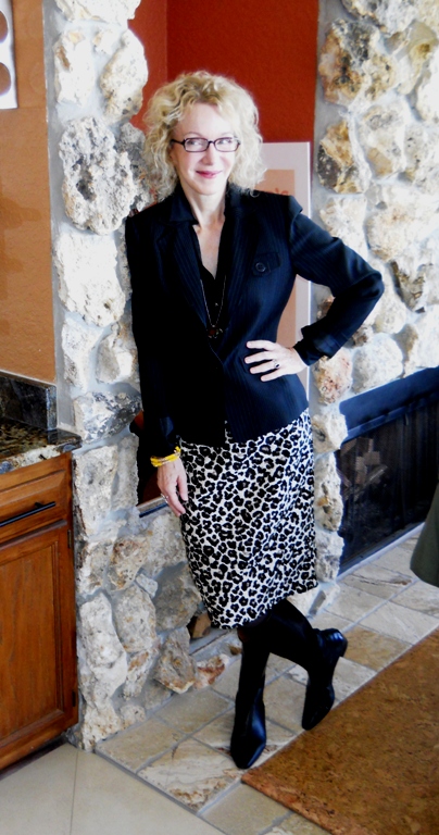 Fabulous leopard skirt and I really like the glasses! Wish I could still get by with readers…my eyes need correction coming, going, near, far and sideways.