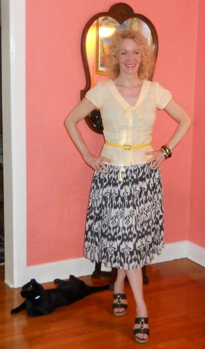 Blouse: Ann Taylor, thrifted, Skirt: Studio West, Belt: Liz Claiborne Shoes: Nine West, Cat: King |