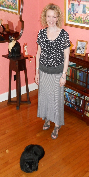 It's a beautiful outfit. I really like the drapiness of both the skirt and blouse. Plus I think it's nice to color-coordinate with the cat every once in a while 😉