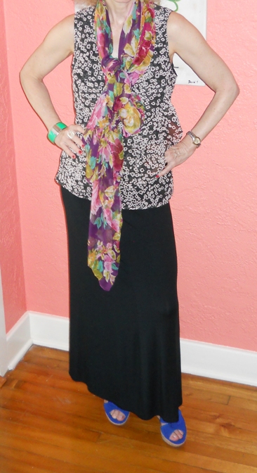 Lessons learned: it’s fun to color outside the lines. Otherwise there are no lessons learned. And to be confident all day, I need to be true to my personal style. Maybe I’ll repeat this scarf and blouse combo for a movie date or lunch with my sister, over dark jeans.