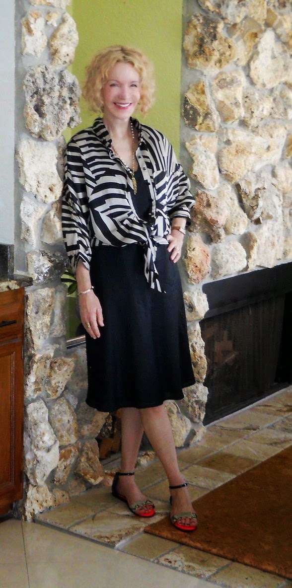 Chic and cheerful, Patti, as you always are! The zebra stripes really add some pzazz, but yes, office-worthy and elegant. Love those sandals. xxx