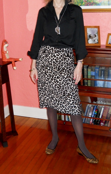 Didn’t I just write that I was not so crazy for animal prints anymore? Wrong. I do still love this skirt. It’s got a great silhouette and a nice heavy cotton fabric that holds its shape. I feel good when I wear it – maybe it’ll become a classic!
