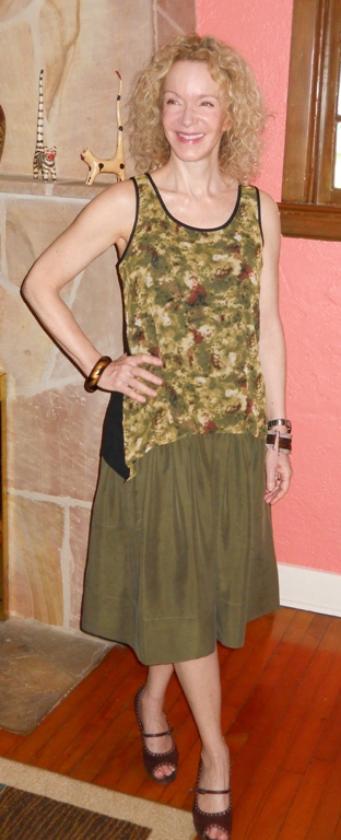 I’m crazy for the top too (do I need more interests??). It’s Vivienne by Vivienne Tam, purchased at Ross for about $8 (similar on eBay). I love the slouchy shape. I realize I could be defining my own shape better than I do in this outfit, but I just plain love slouchy-over-full. And I know I will be just as happy/comfortable at the end of the day as I am at 9 AM.