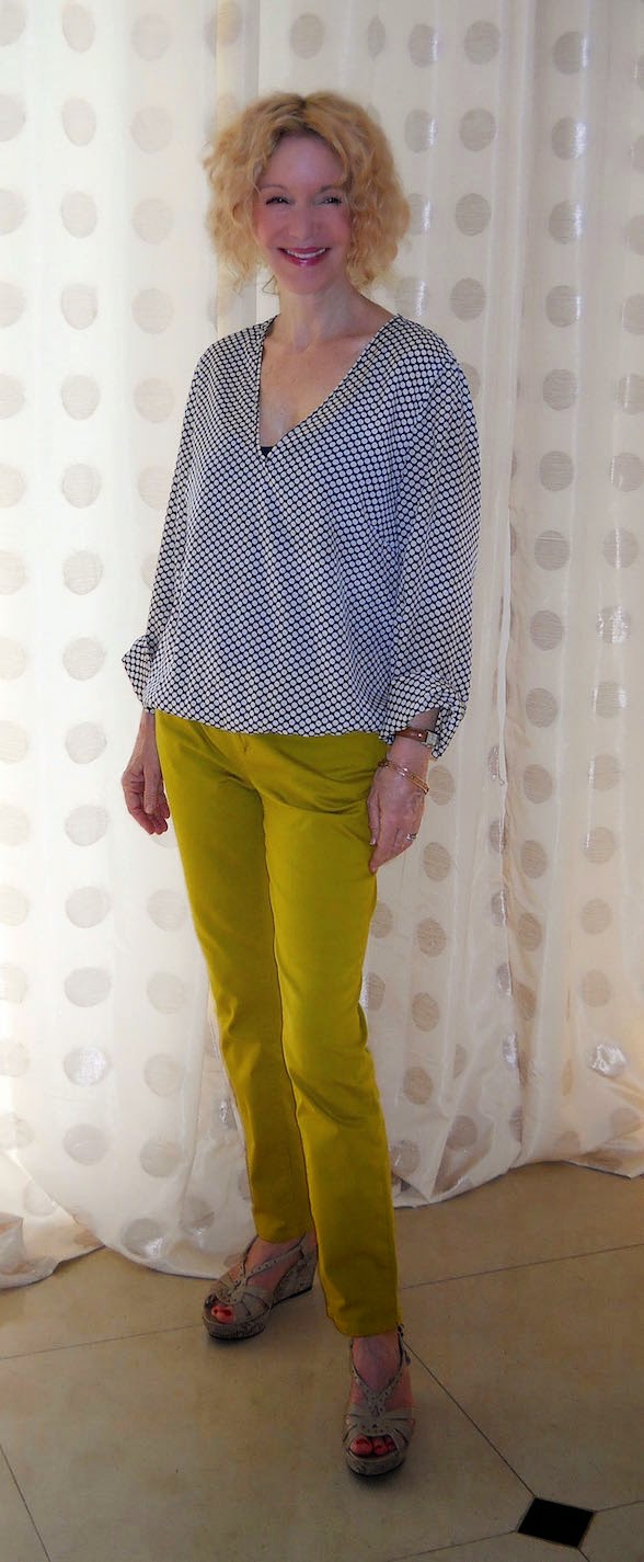 This is really a cute look, Patti! I love the blouse and the fit of the pants. Great job!