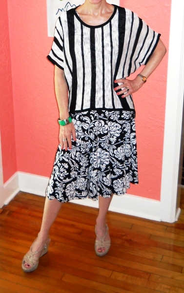 Clearly, consensus says …. a resounding "Yup." I've never made this work, but then I don't have many print skirts or bottoms. This gave me an idea … perhaps I could make a skirt or two out of older season dresses that no longer look modern on top.  Thanks, you little muse, you!Â