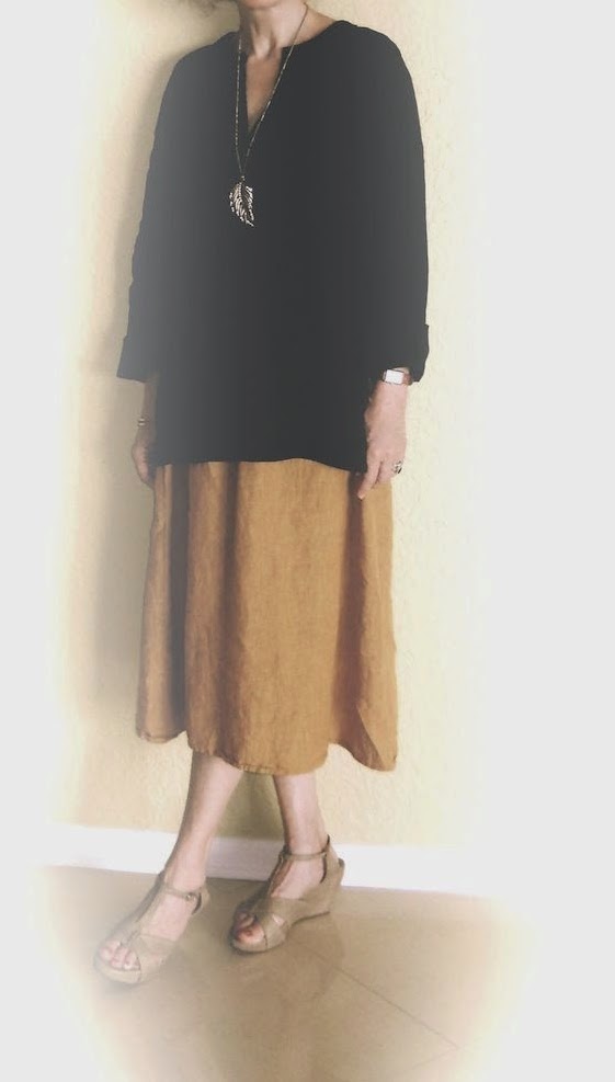 Nice outfit. I usually hold those dark colored summer-weight fabrics for August-October. Once shops clear out Spring/Summer items, which they're doing right now, they'll be full of lightweight dark clothing. If I have my own dark colored items in mind it's easier to shop my closet.